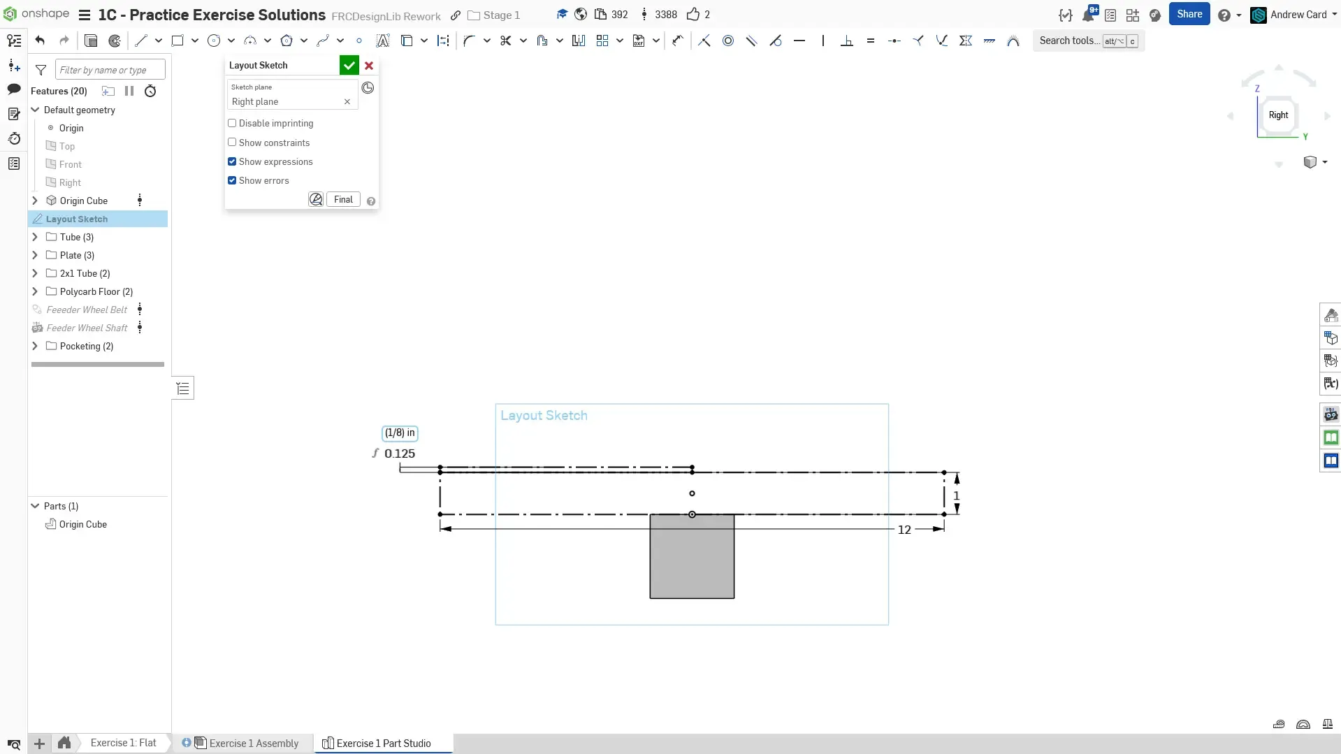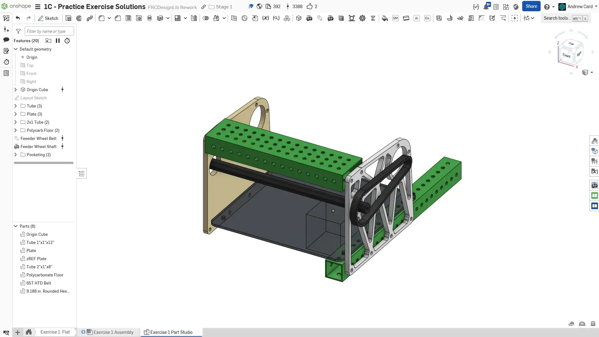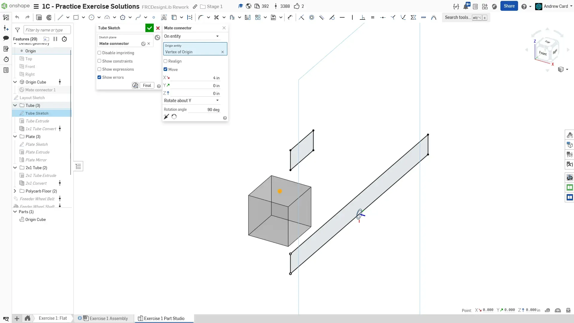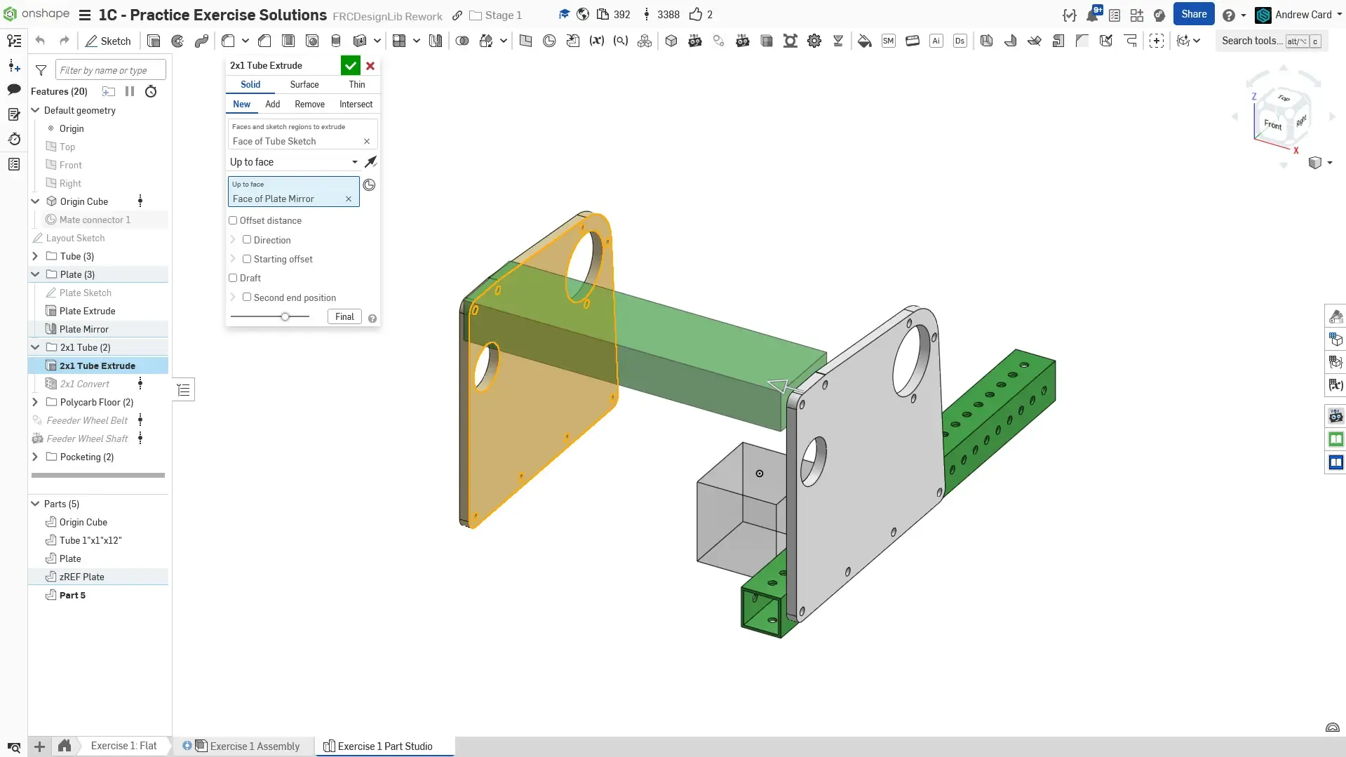 Try playing around to get a feel for what things are and aren’t parametric in exercise 1. You can try changing things like the width, length, tube positions, or gear ratio. Which dimensions are easy to change and which are difficult? Which dimension changes cause rebuild or assembly error?