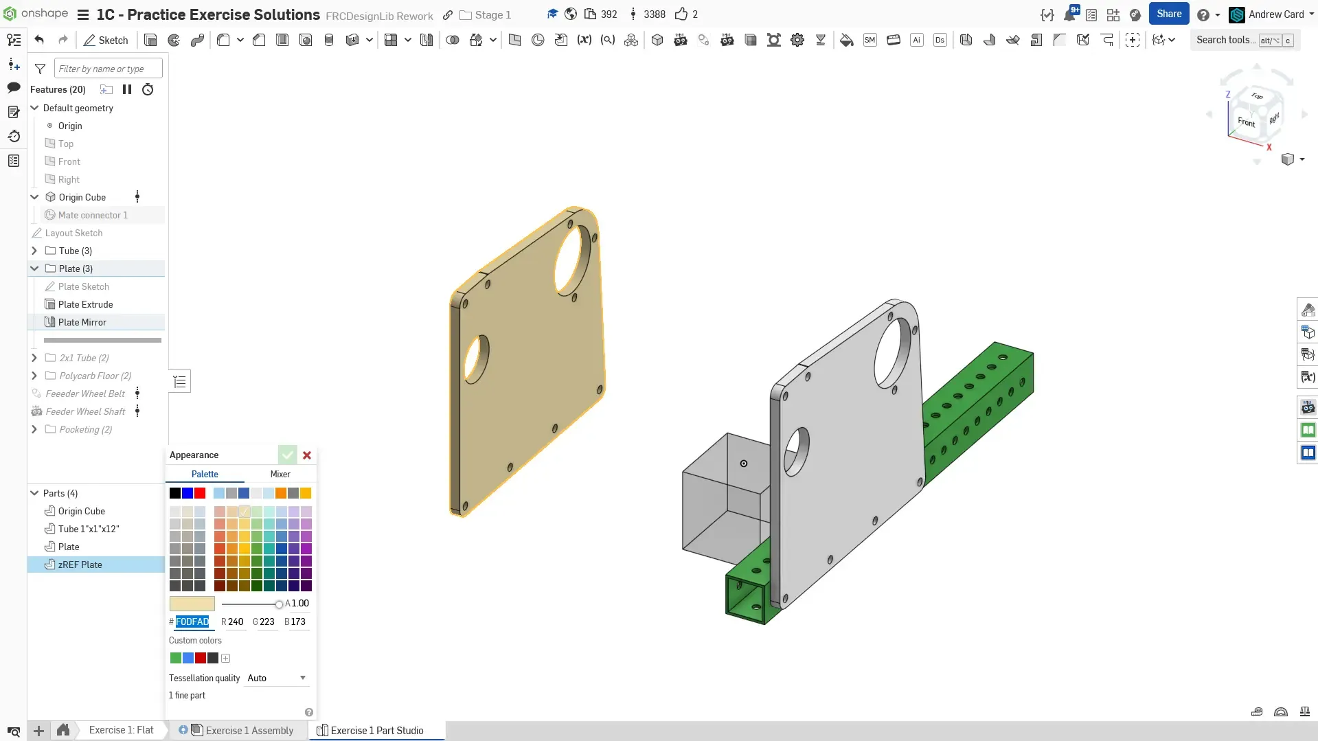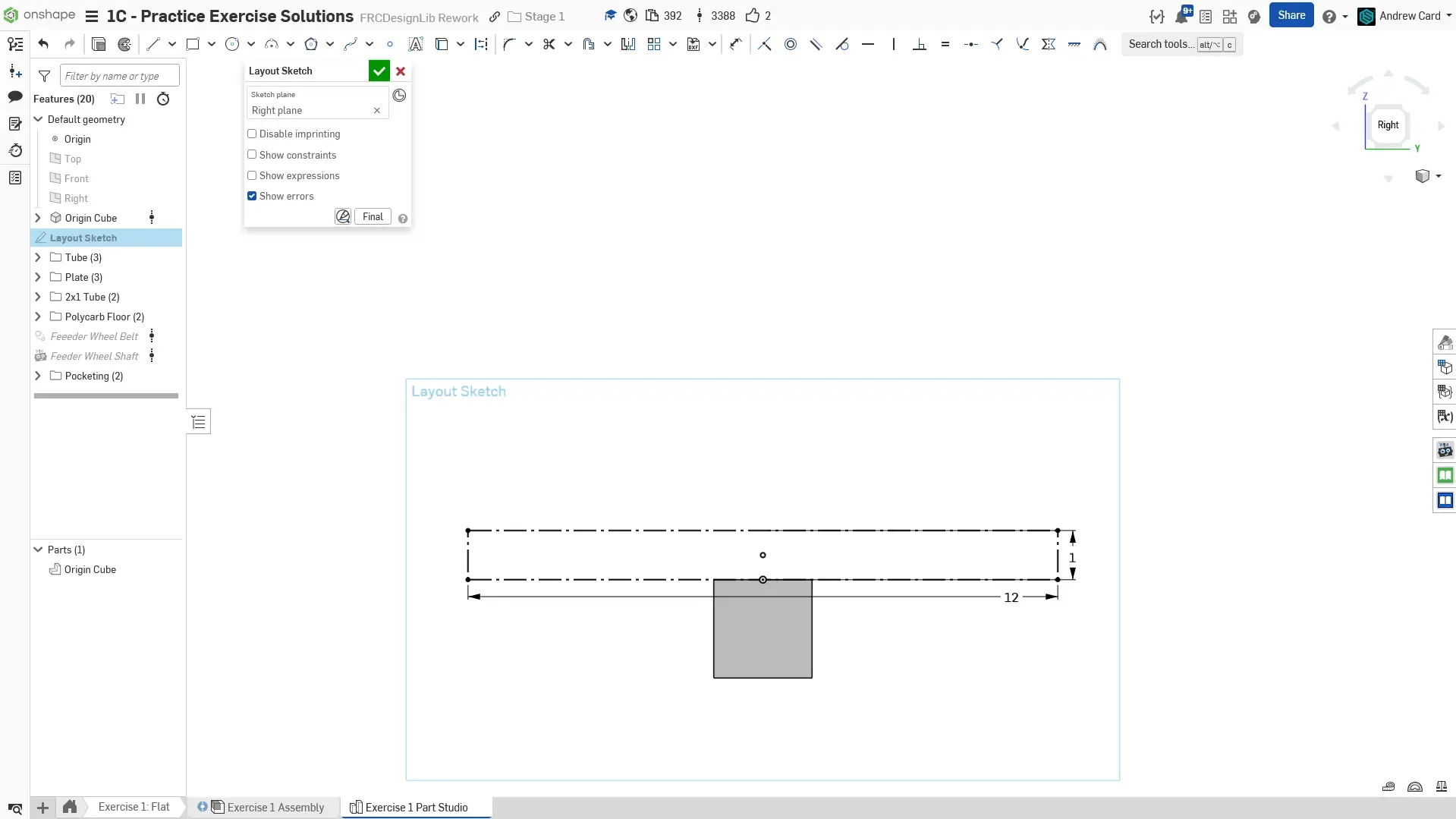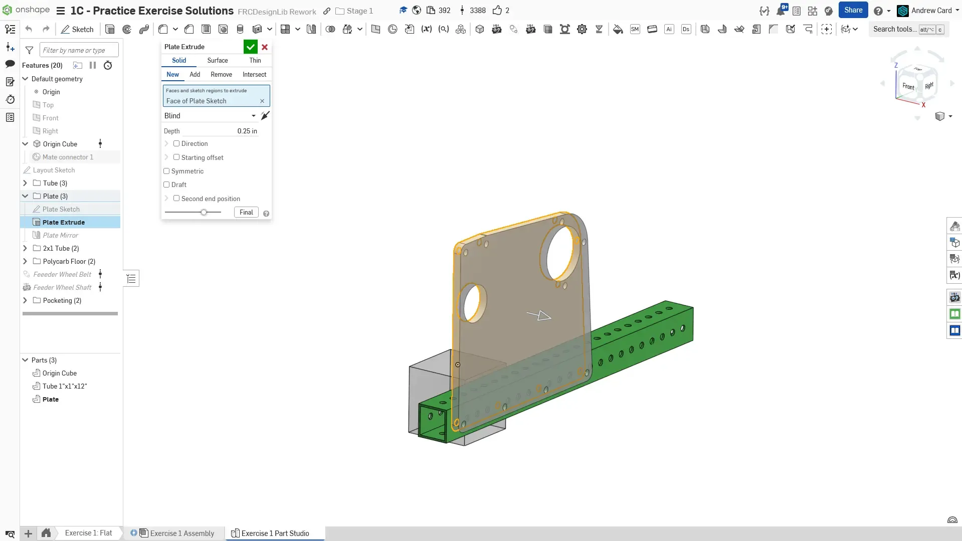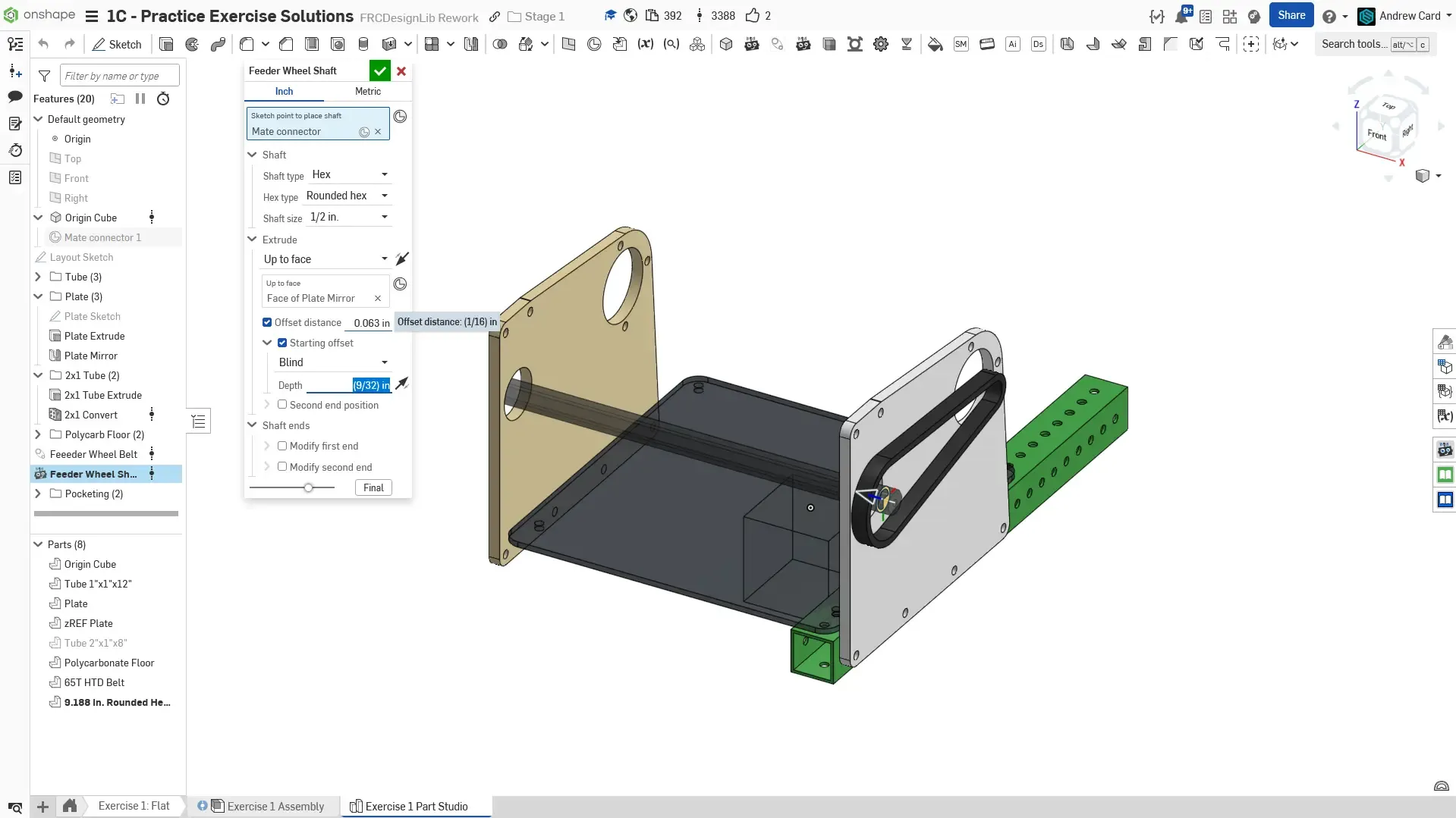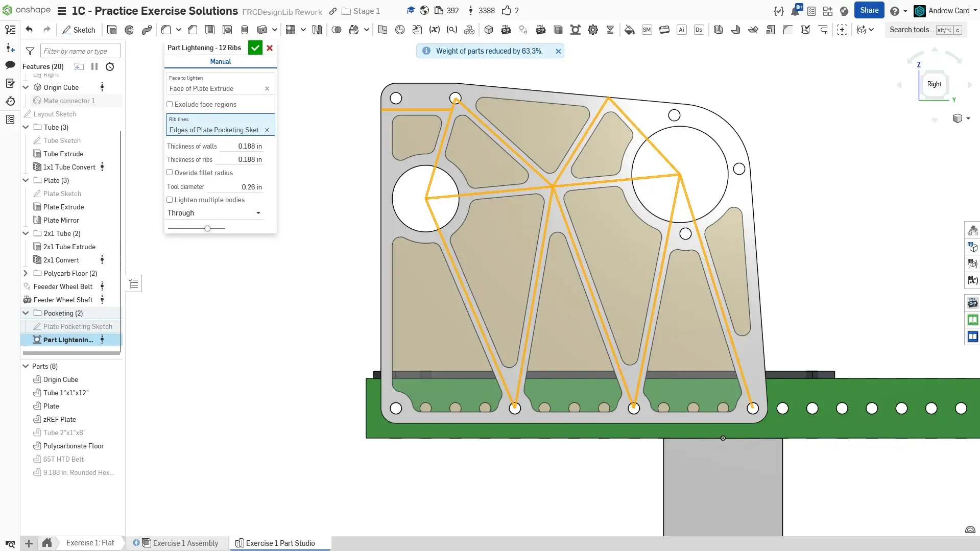 Try playing around to get a feel for what things are and aren’t parametric in exercise 1. You can try changing things like the width, length, tube positions, or gear ratio. Which dimensions are easy to change and which are difficult? Which dimension changes cause rebuild or assembly error?