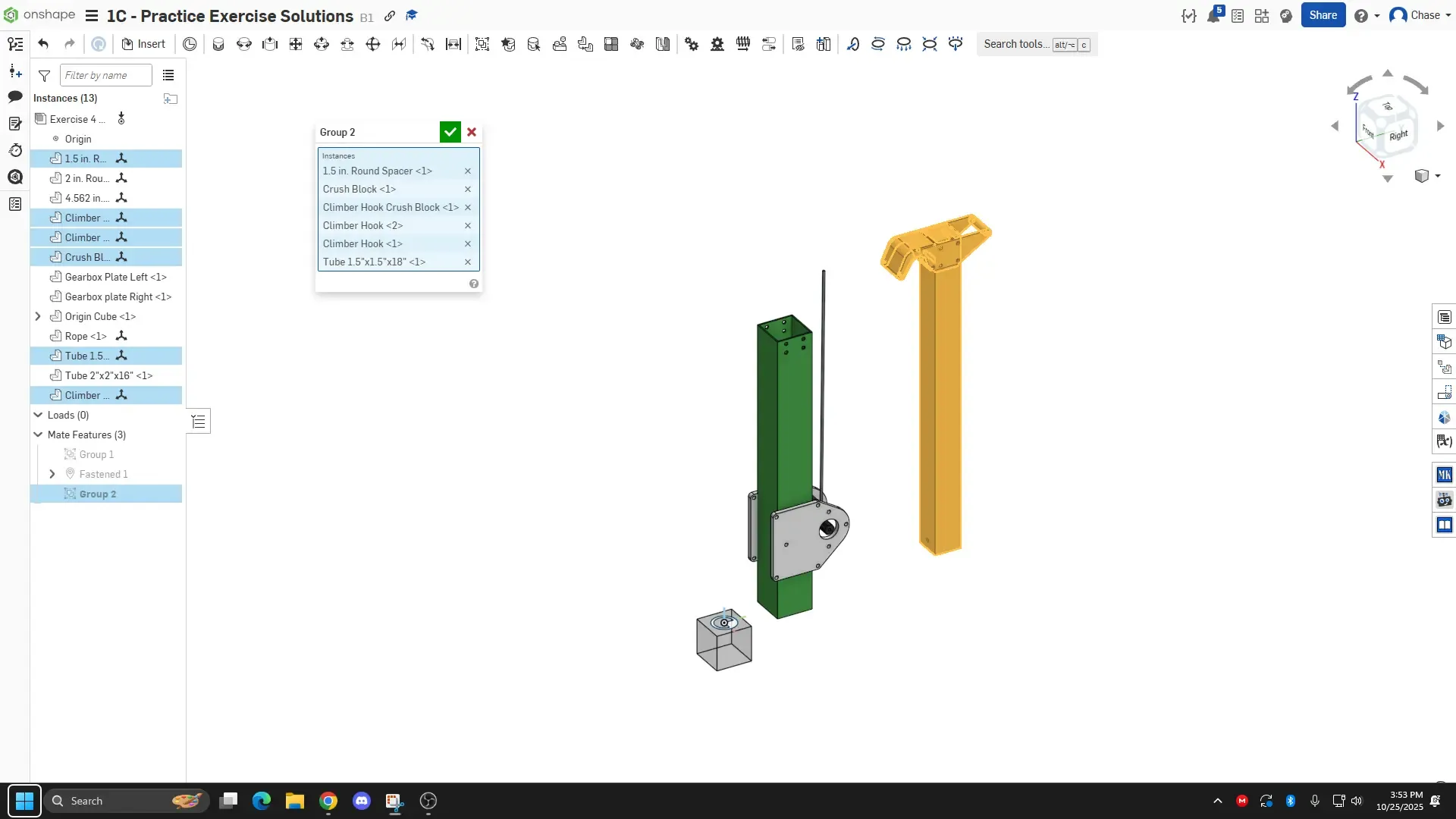Insert the climber components and group only the base stage components together to the Origin Cube. This is because the inner stage moves relative to the base stage, so we cannot group them together.