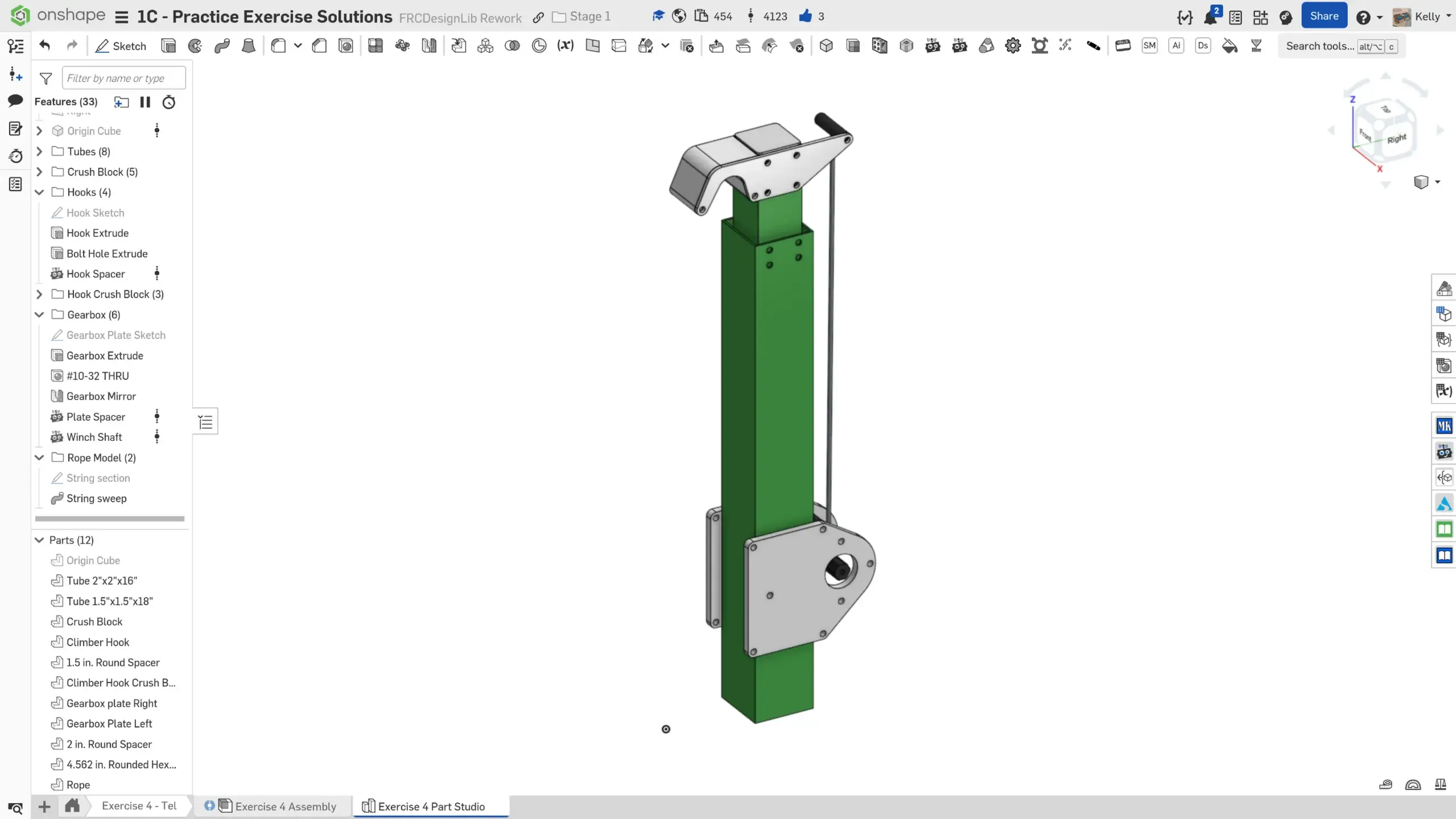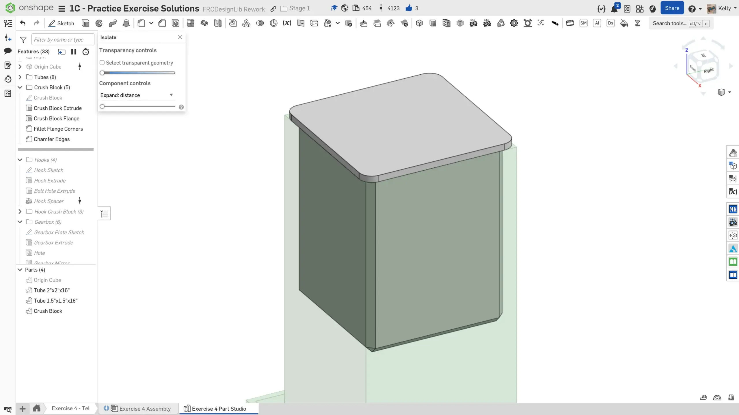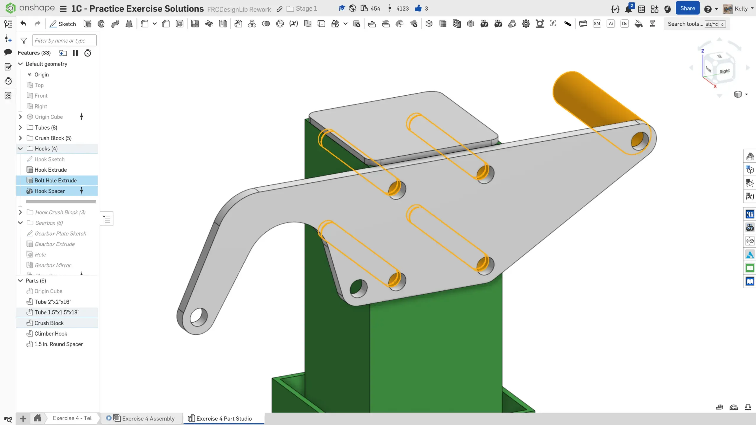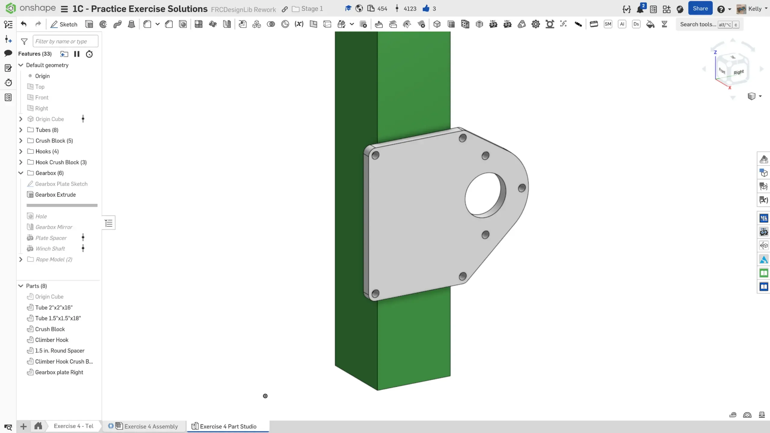 Navigate to the “Exercise #4 Part Studio” tab in your copied document and follow the instructions in the slides to complete the part studio for this exercise.