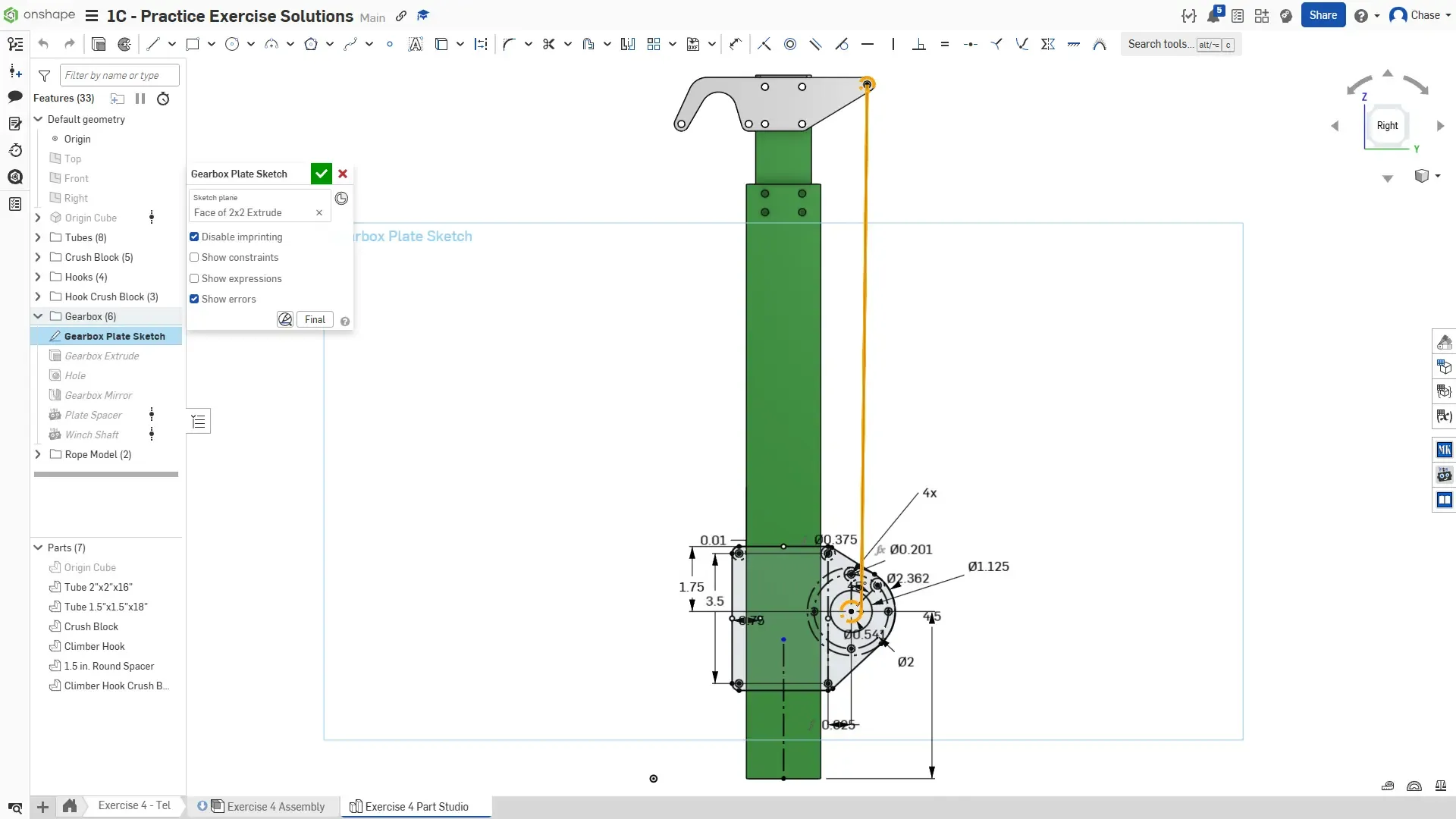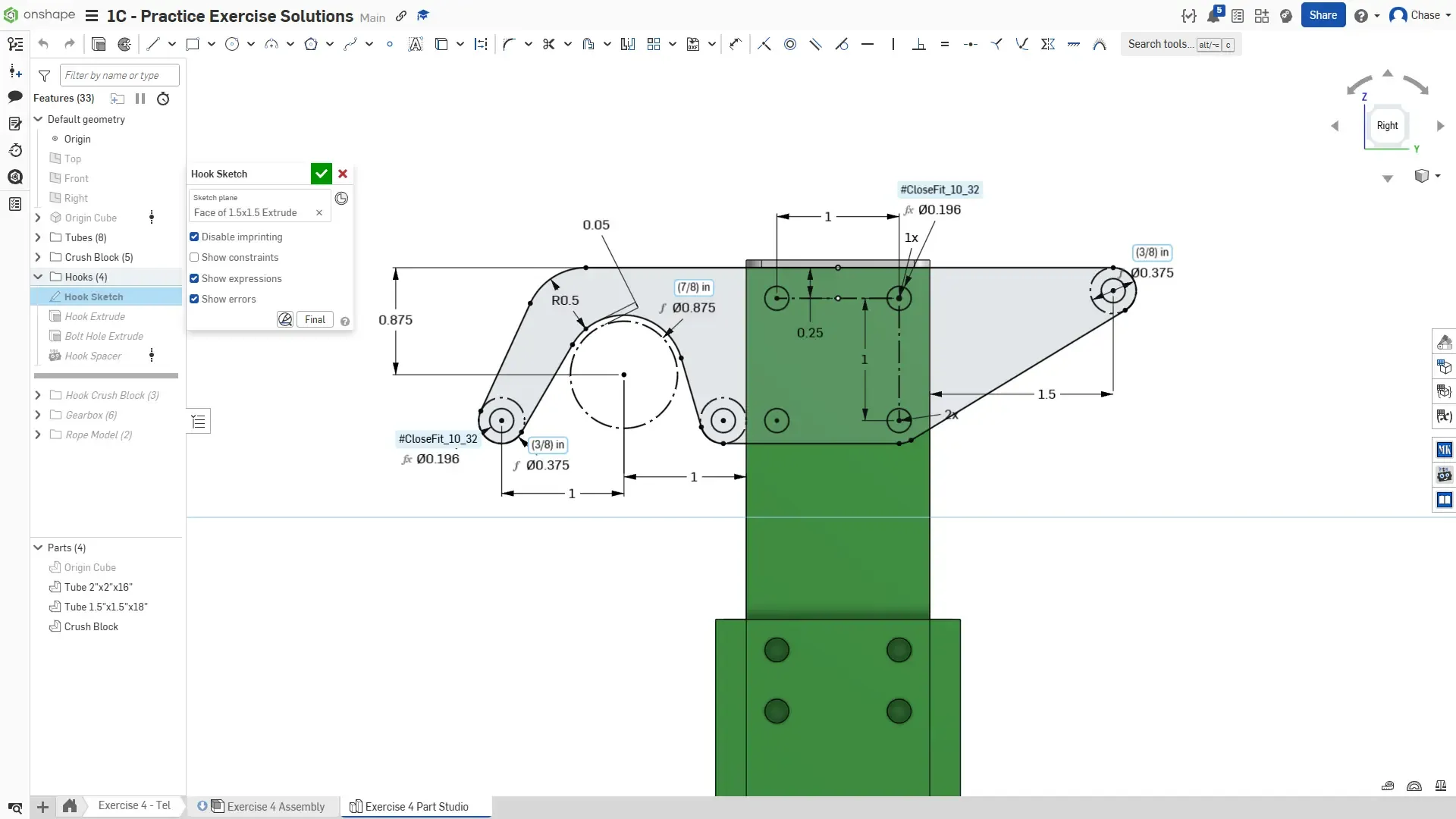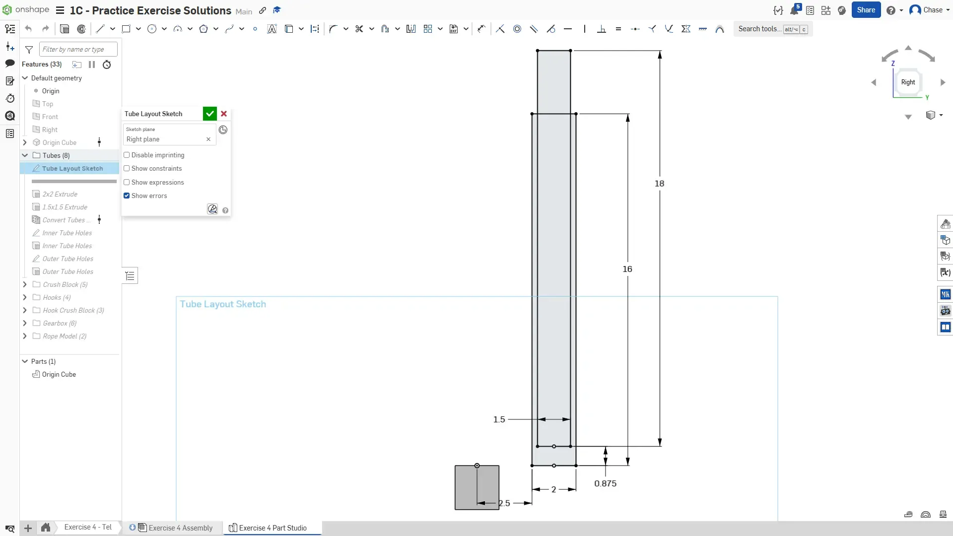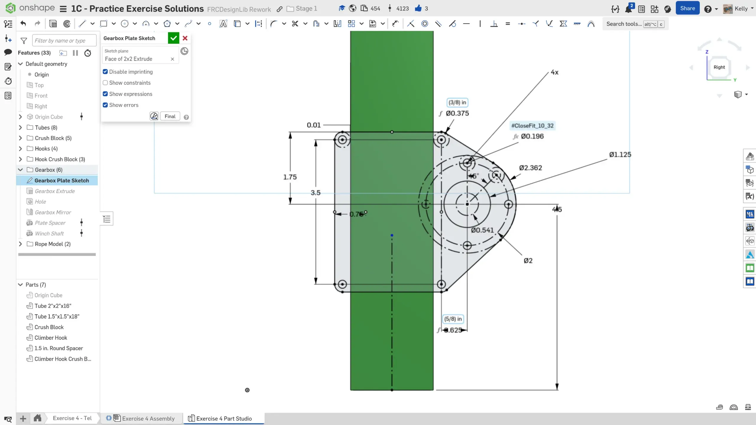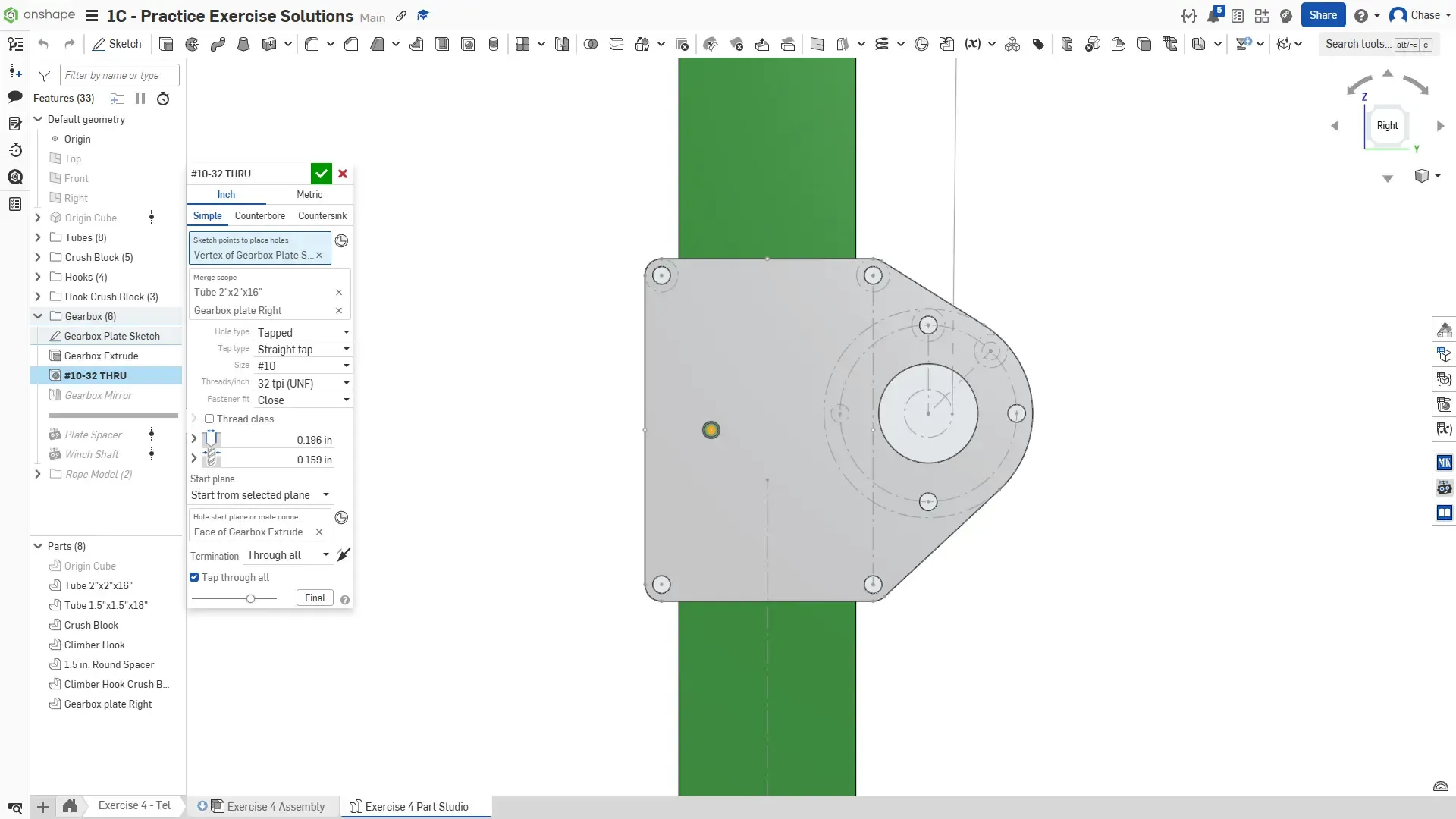 Navigate to the “Exercise #4 Part Studio” tab in your copied document and follow the instructions in the slides to complete the part studio for this exercise.