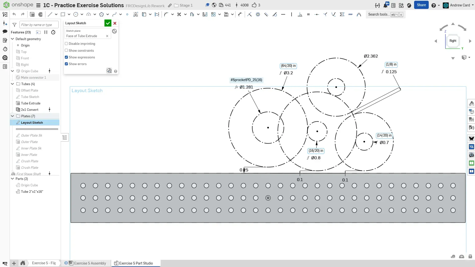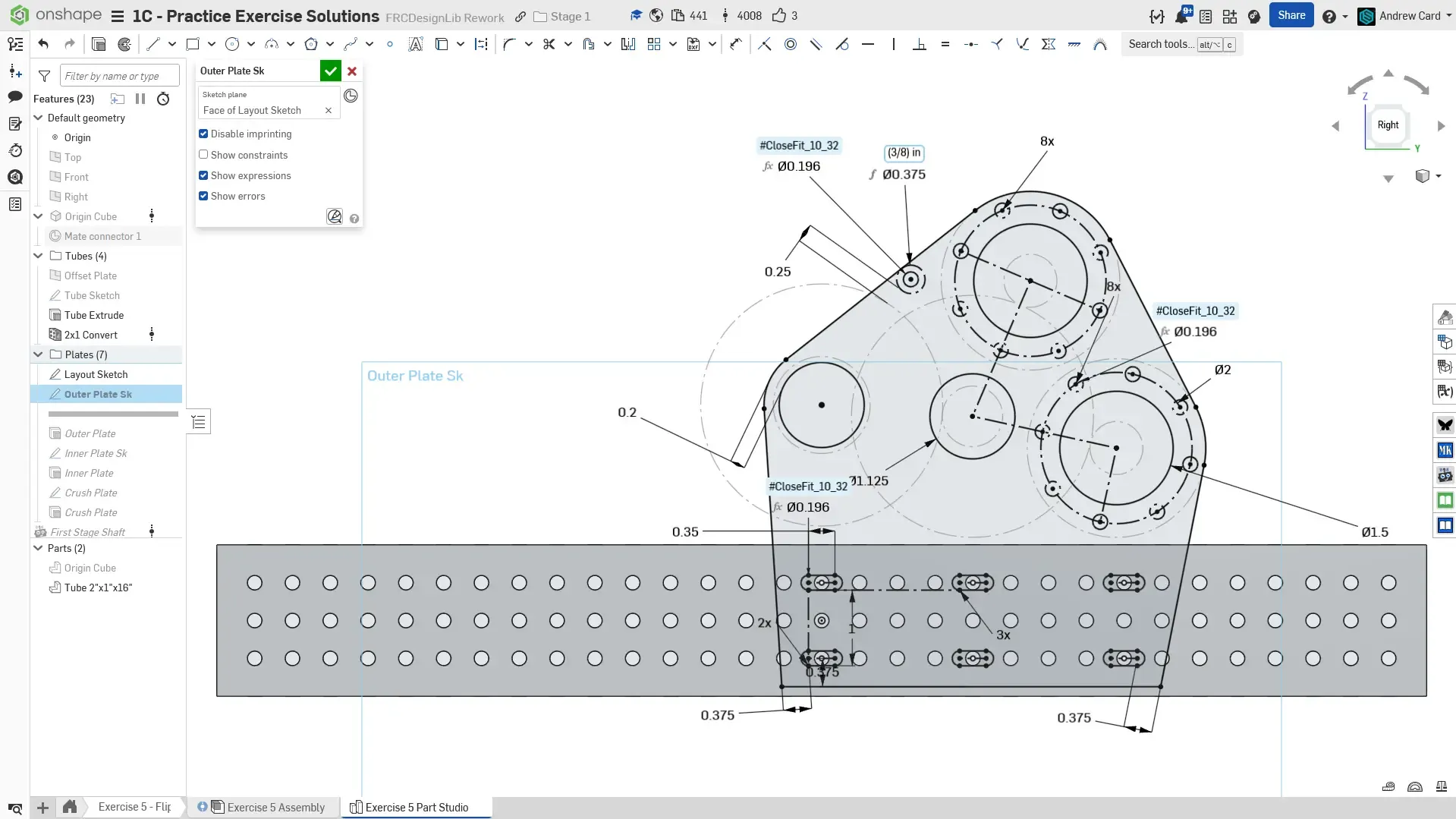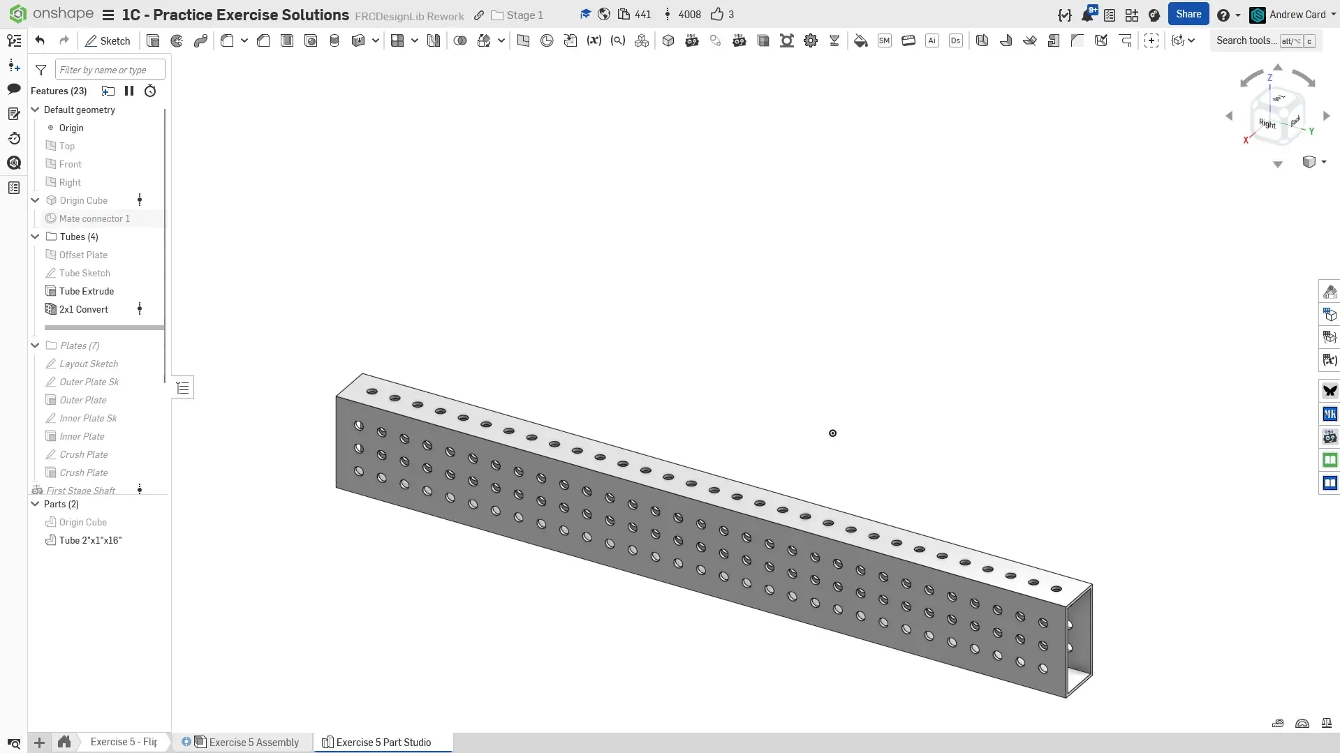 Navigate to the “Exercise #5 Part Studio” tab in your copied document and refer to the solution document to complete the part studio for this exercise. The following instruction slides only provide a general outline and some key details.