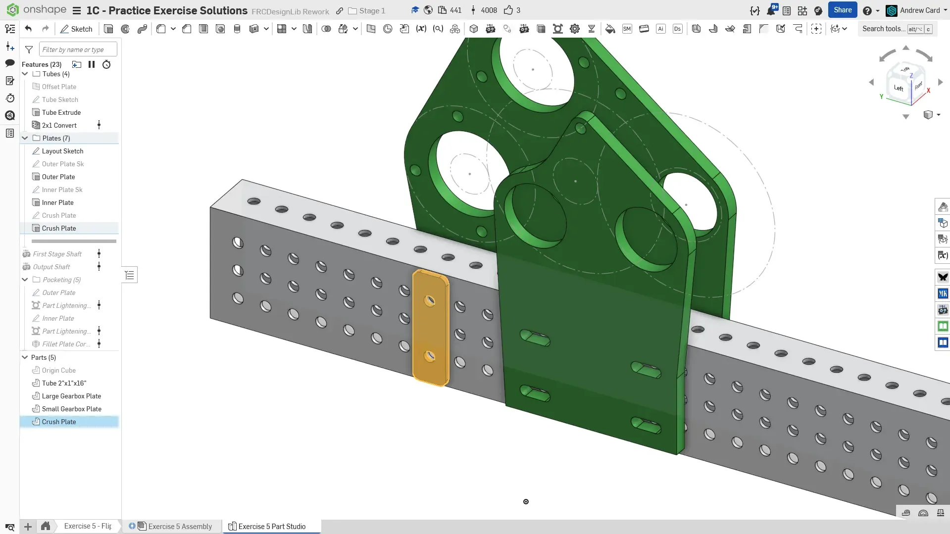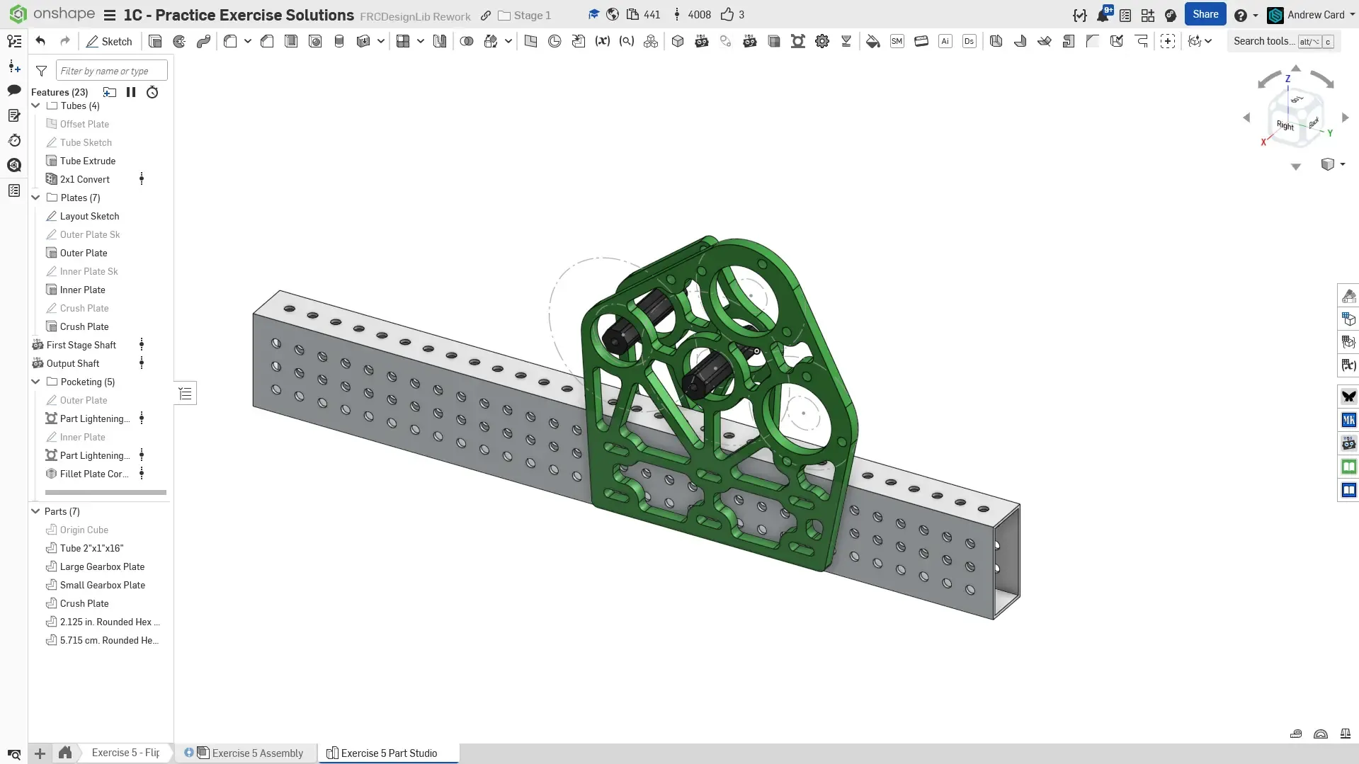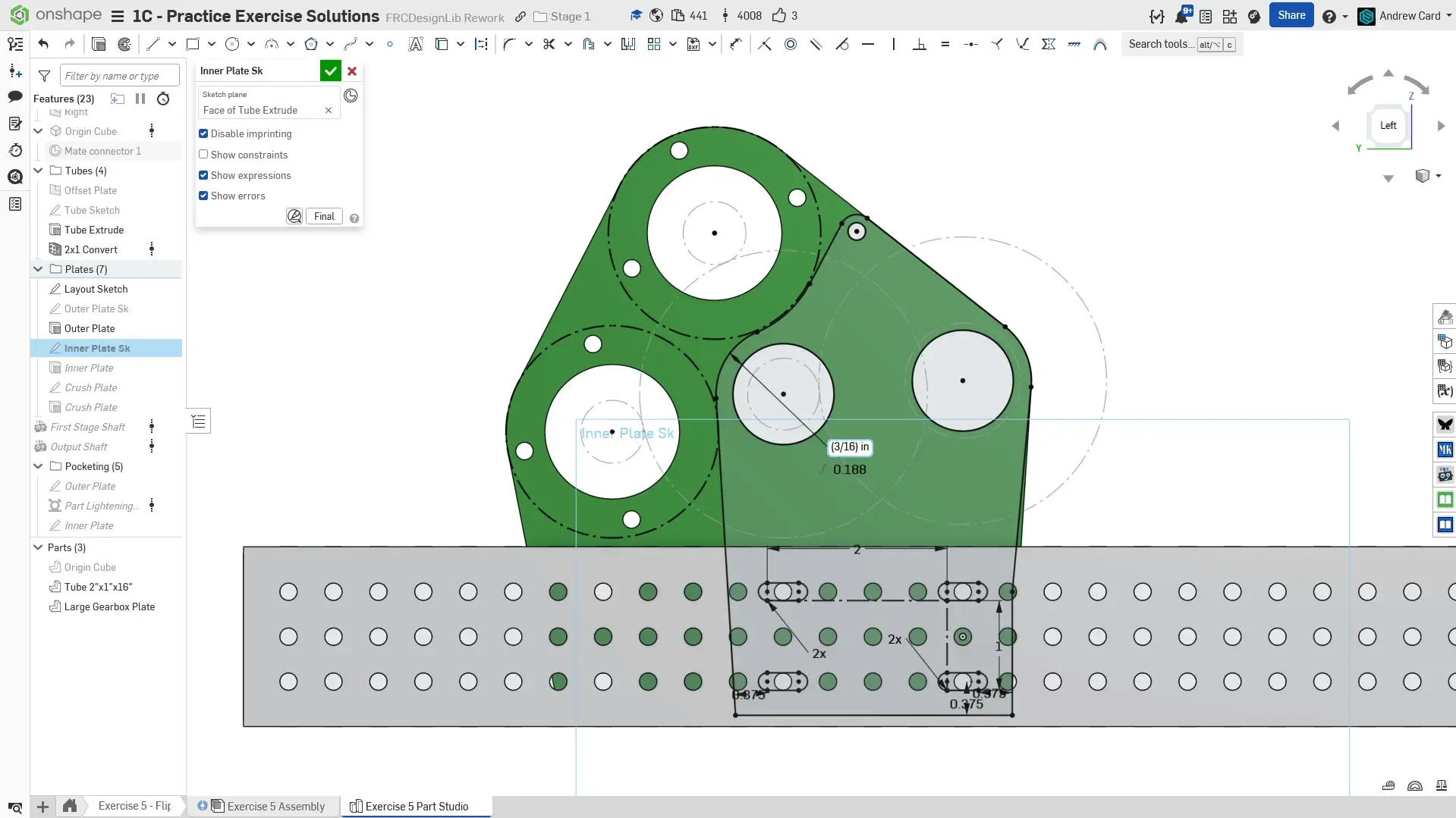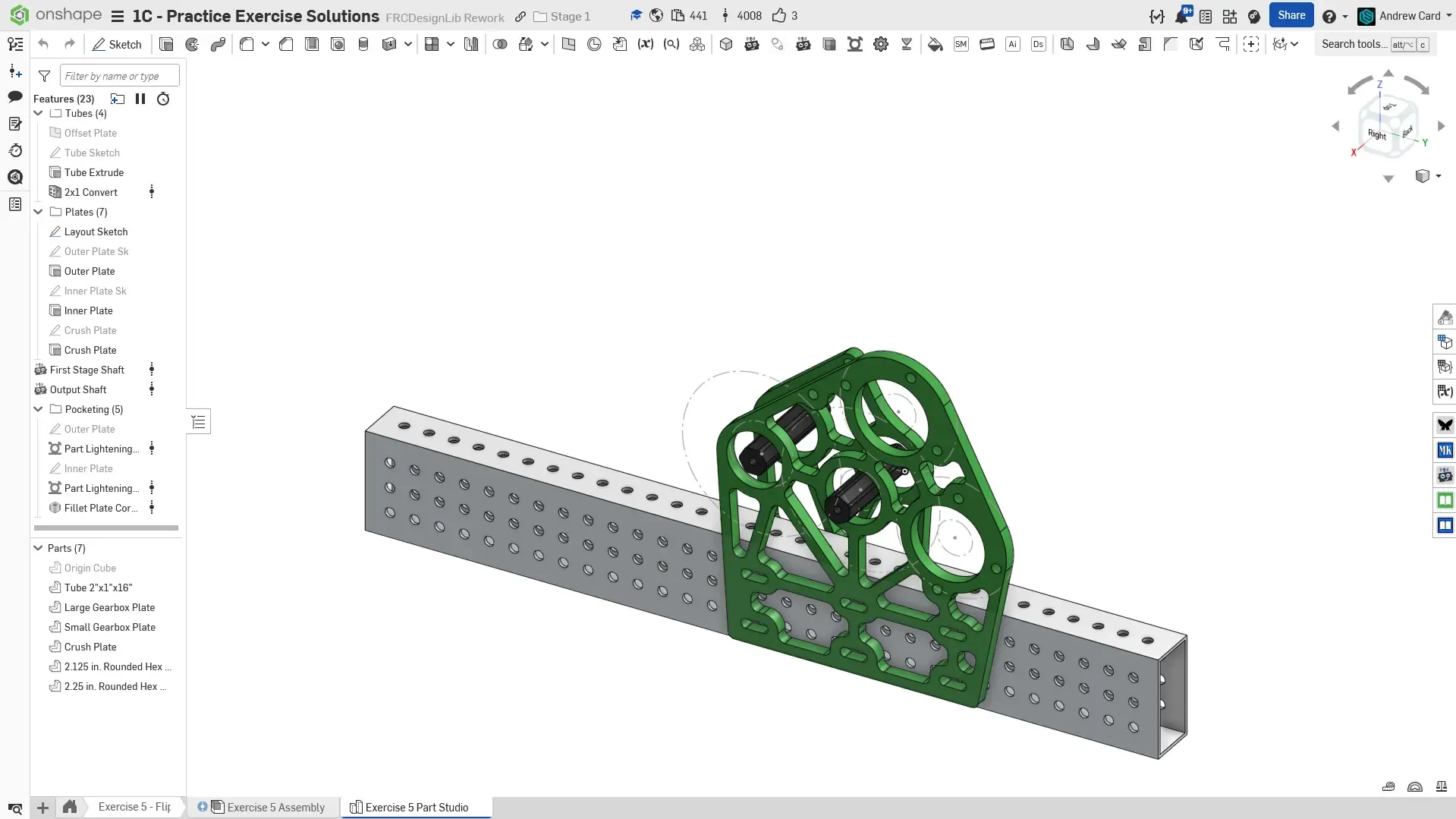 Navigate to the “Exercise #5 Part Studio” tab in your copied document and refer to the solution document to complete the part studio for this exercise. The following instruction slides only provide a general outline and some key details.